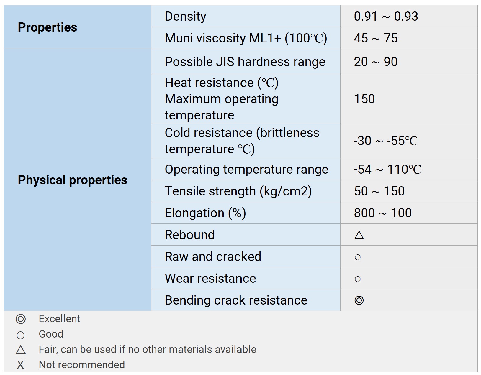 IIR (isobutylene isoprene rubber) is a type of synthetic rubber with the outstanding property of being air-permeable. Other properties such as abrasion resistance, tear resistance, tensile strength, adhesion to fabrics and metals of butyl rubber are good. Regarding environmental impact, butyl rubber has very good resistance to sunlight, weather and ozone. Good resistance to dilute inorganic acids, alkalis, phosphate ester oils, acetone, ethylene, ethylene glycol, water, concentrated acids, except nitric and sulfuric; Not resistant to petroleum products.