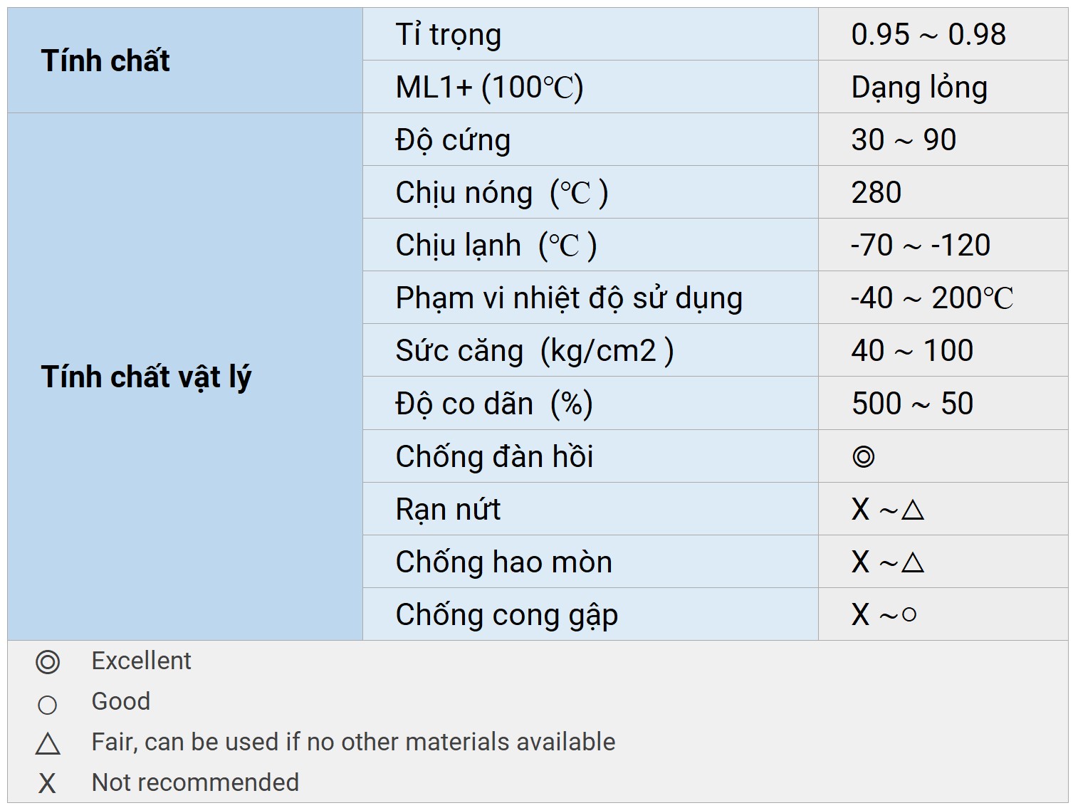 “Cao su silicone là một vật liệu đàn hồi (tương tự cao su kỹ thuật). Có khả năng chịu nhiệt và lạnh, không độc hại, có đặc tính cách điện tốt và không chịu được dầu, ozon và dung môi. “